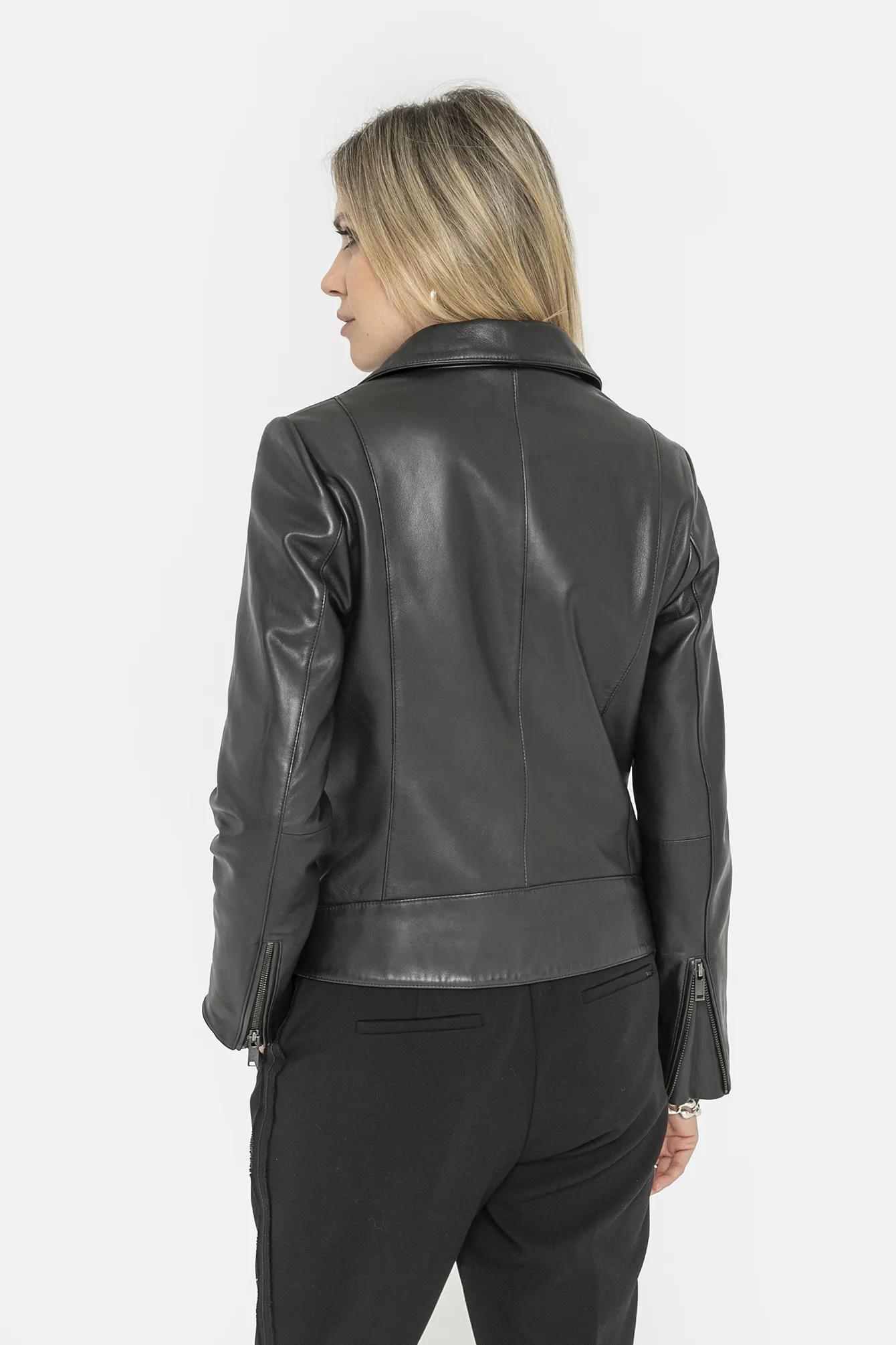 Le perfecto oui, mais en cuir véritable, doux et souple, et avec des détails féminins. On l’adopte à 300% pour la touche rock apportée à nos tenues.